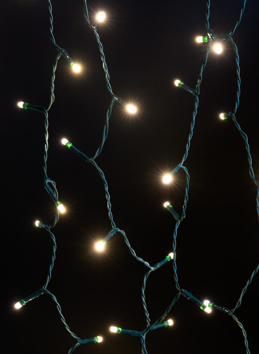 The 12ft Long 50 Light LED Warm White Fairy Light will give your celebration a lovely, magical glow. The warm white LED lights give out a gentle, cosy light that makes any event setting feel more romantic and private. This string light is great for making lighting configurations that are easy to move around for change. The green cord goes well with your decor. It may be used in a lot of different ways, such hanging from ceilings, draped over tables, or sparkling from walls.