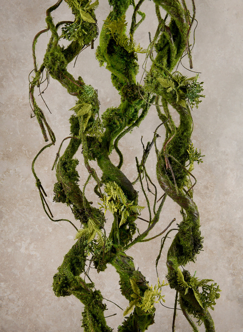 Incorporating an unusual and organic design, the 82-inch Long Mossy Vine is a stunning decorative accent. The untamed beauty, movement, and depth that this vine brings to any arrangement are perfect for hanging installations, draping over tables, or wrapping around archways.