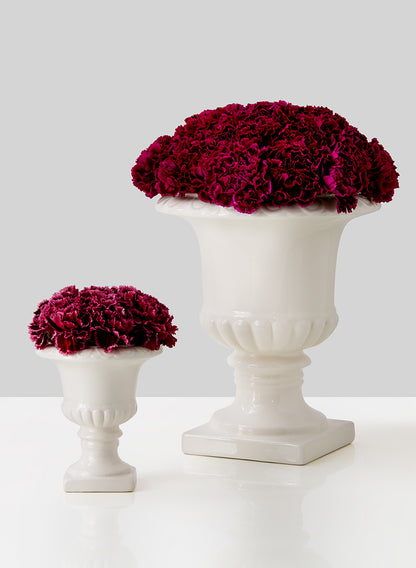 Choose your favorite floral arrangements and blooms for each white ceramic urn vase to highlight. If you're going for a fresh, monochromatic look, fill your wholesale white ceramic urns with white roses, lilies, or peonies. Take a look at what we did here for some inspiration. With this stylish, versatile vase, the decorating possibilities are nearly endless.