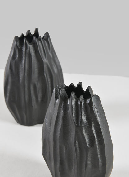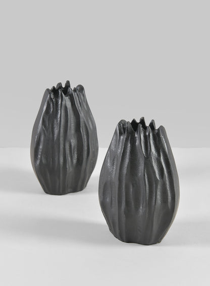 5in Tall Aluminum Cosmos Black Bark Look Mini Vase, Set of 2