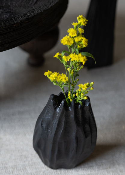 Sculptural in shape and elegant in its naturalistic simplicity, the Aluminum Cosmos Black Bark Look Vase is a breathtaking example of modern sculpture that harmonizes with nature.
