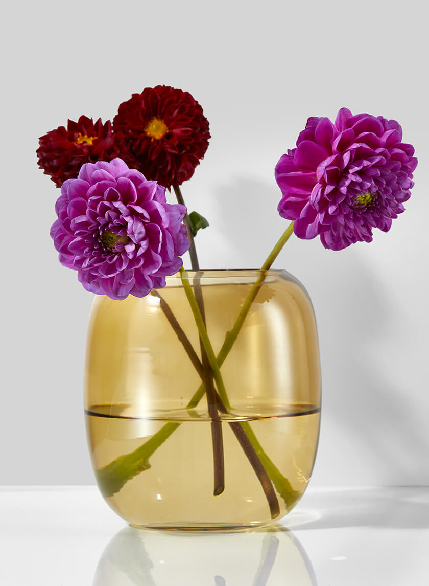 This dark amber glass vase is a smart go-to for fall gatherings. Whether you need decor for weddings, parties, or Thanksgiving dinners with the family, you can't go wrong with adding this piece to your table setting. The gold undertones of the amber shade add a subtle shine, while the capsule shape gives this vase a versatile look.