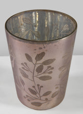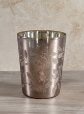 5in Tall Elizha Etched Leaf Burned Silver Glass Holder