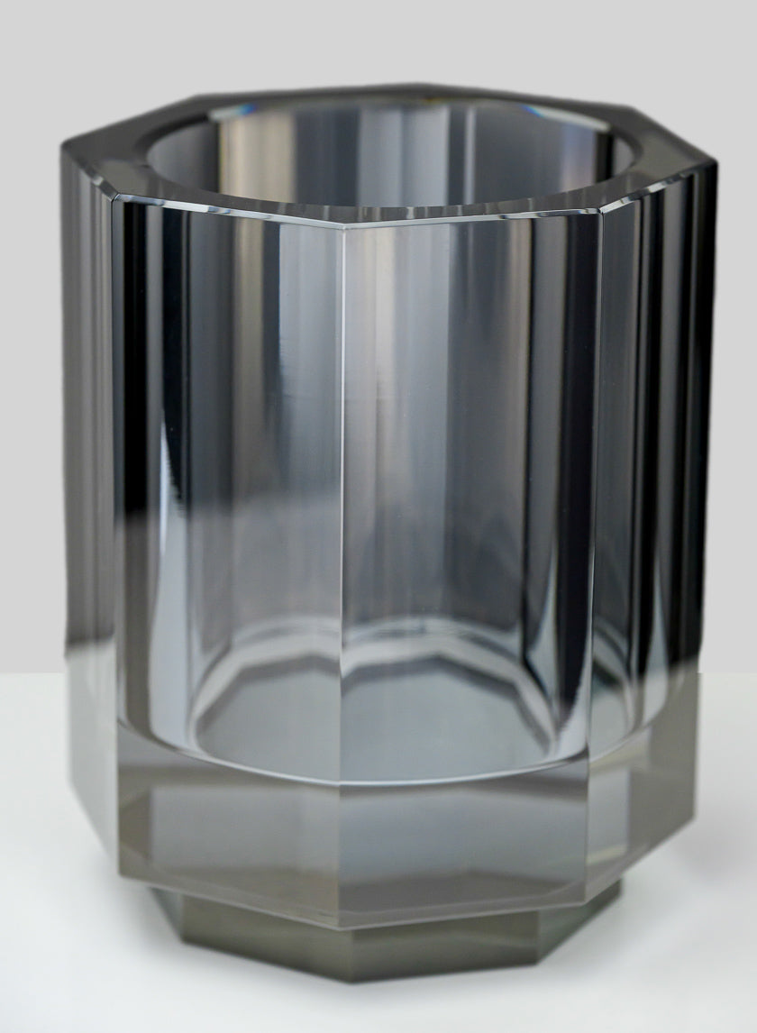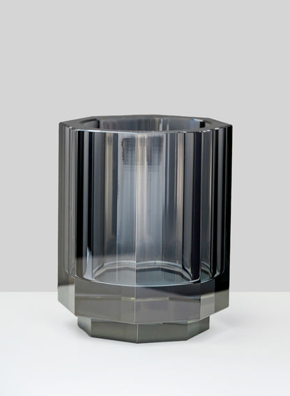 5in Tall Krustallos Luxe Smoke Gray Crystal Glass Candle Holder