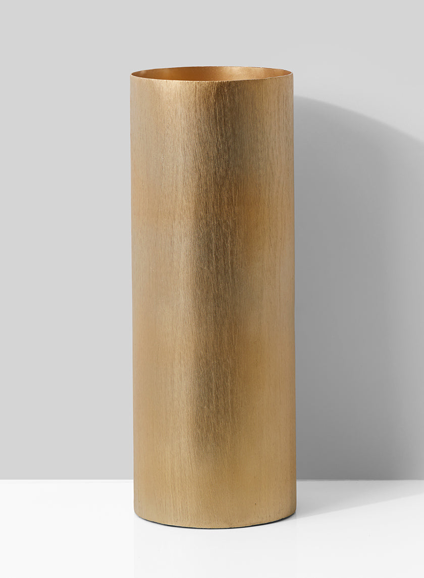 14in Tall Gold Cylinder Aluminum Vase