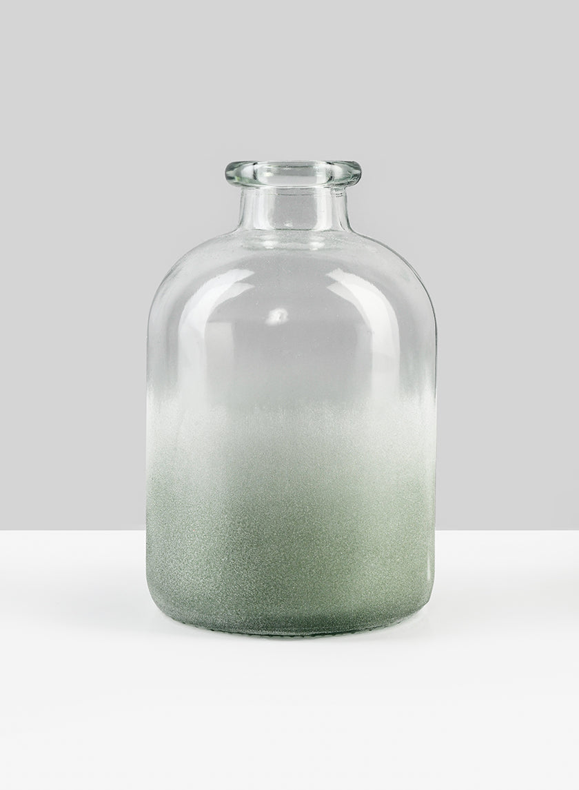 6.5in Tall Frost Sea Glass Green Bottle Vase