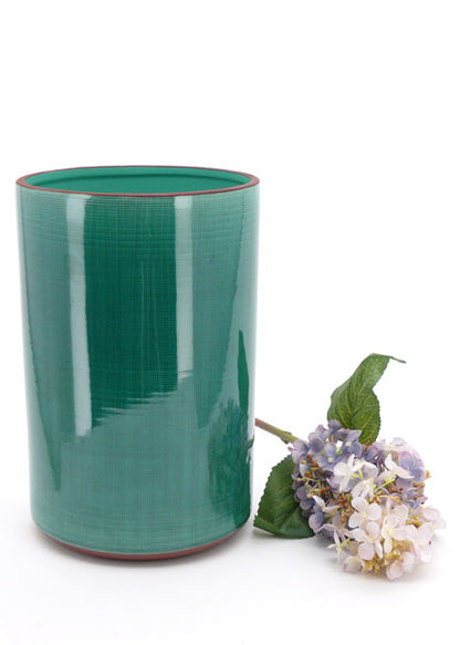 An indispensable piece of decor, the Teal Linen Ceramic Cylinder Vase elevates any space to a refined and fashionable haven.
