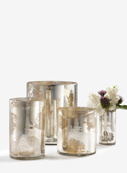 Use our wholesale antique silver vases by filling them with roses for a spring wedding or event. In the fall, you can place darker colored arrangements or even fruit in the round vases. Try filling out your tablescape with the vases and adding candlelight with our matching mercury glass votive holders.