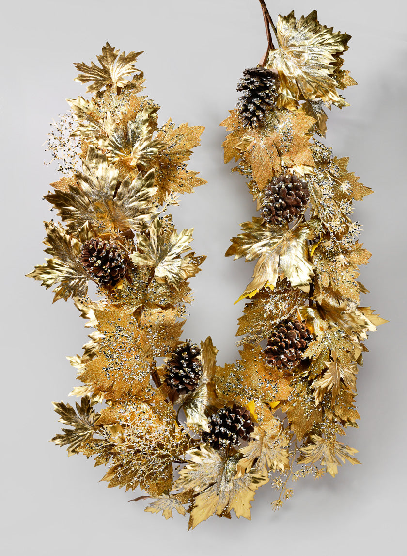 You can use our Gold Mixed Maple Leaf Garland, Case of 2, to decorate your tree or discover new and creative ways to style it throughout your celebrations. Use it for draping across a mantel, framing a window, or wrapping around a wreath. You can even hang ornaments, ribbons, or lights from the garland to customize it for parties, holiday events, or winter celebrations.