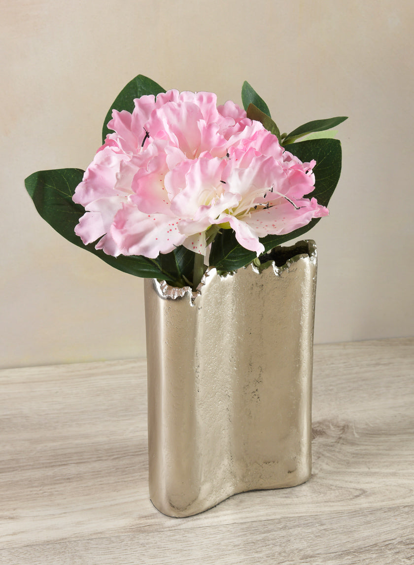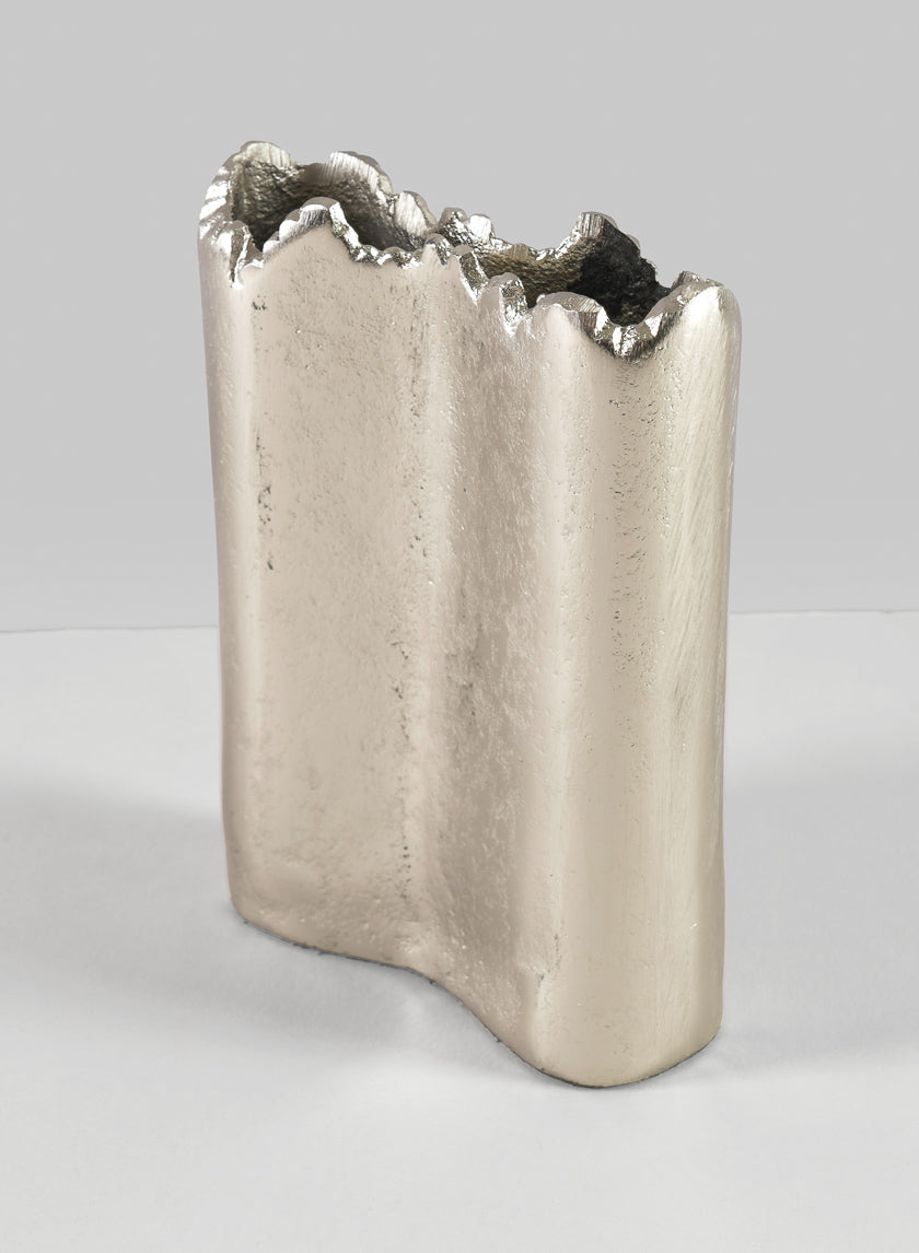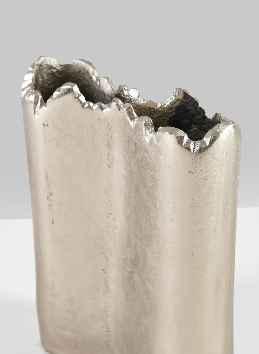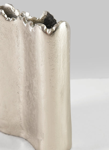 More than simply a vase, the Silver Tone Aluminum Elongated Iris Vase is an exquisite work of modern design. Featuring an artisan-inspired structure, a graceful silhouette, and shimmering silver tones.