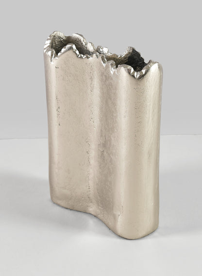 6in Tall Aluminum Elongated Iris Silver Tone Vase