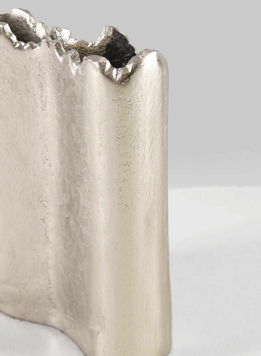 - Design and Shape: Drawing design cues from organic forms, the vase features a swooping shape reminiscent of the fluidity of melted metal or fabric.