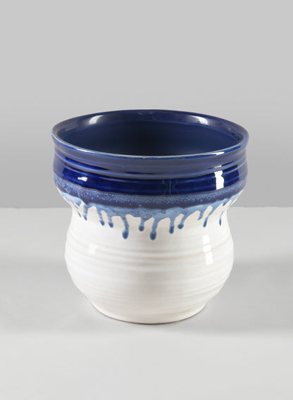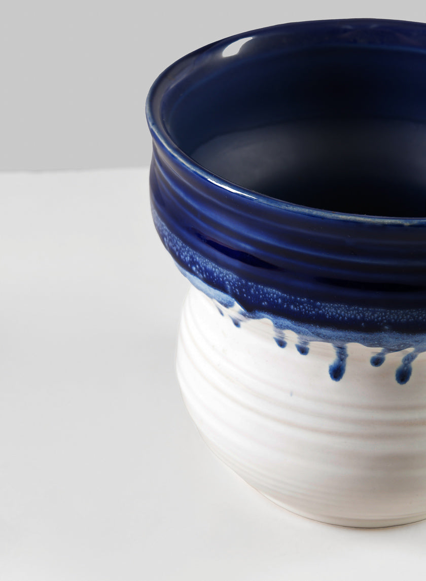 An elegant and eye-catching accent element for any plant setup, the Harami Running Blue Pot has a fluid creative glaze, a timeless color combination, and an eye-catching shape.