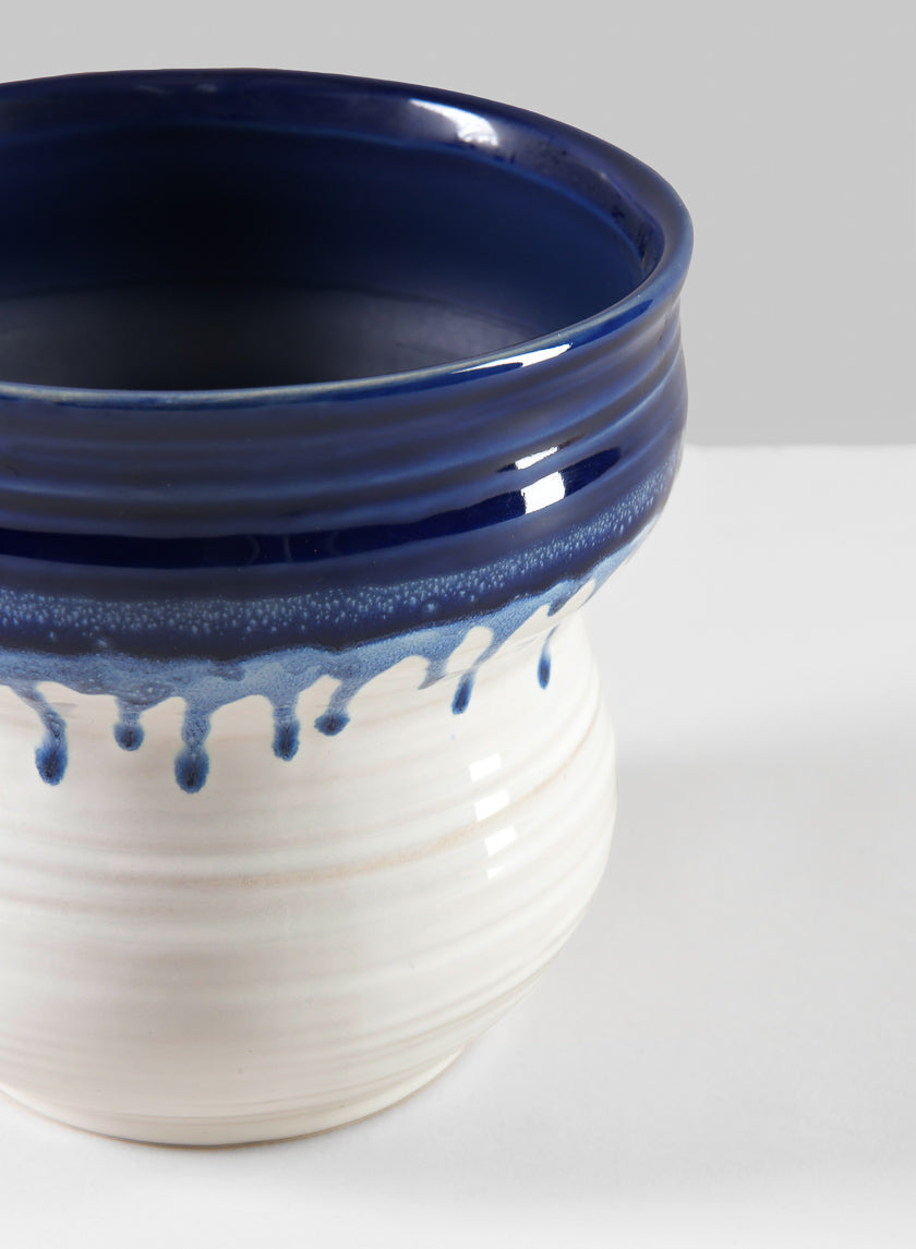 - Color: An elegant dripping appearance is created as a glossy deep blue finish flows into a clean white base.