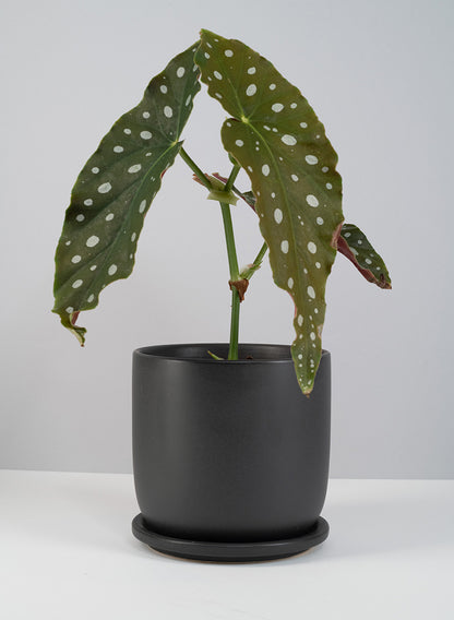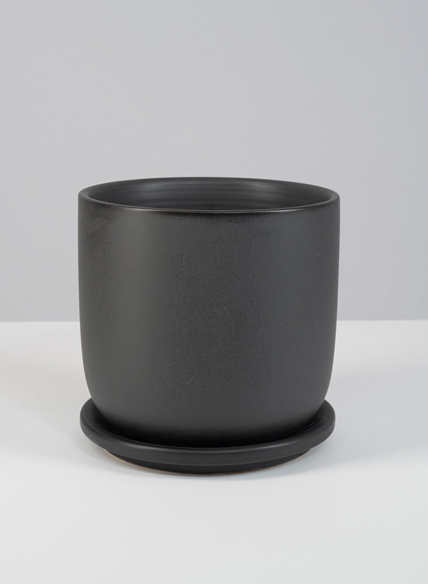 5.75in Tall Matte Black Aeon Ceramic Pot & Saucer