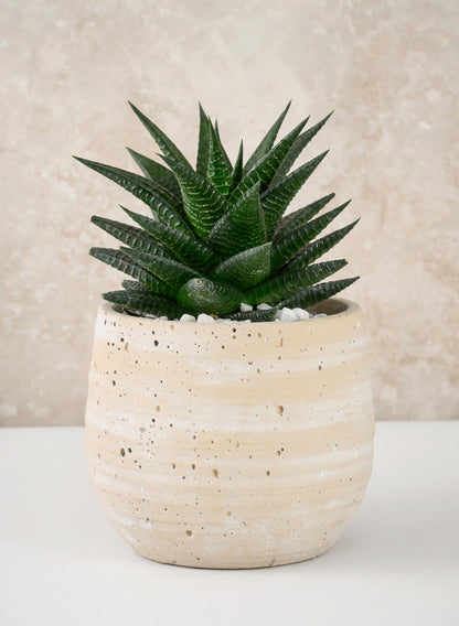 5in Tall Natural Slate Beige Cement Cache Pot