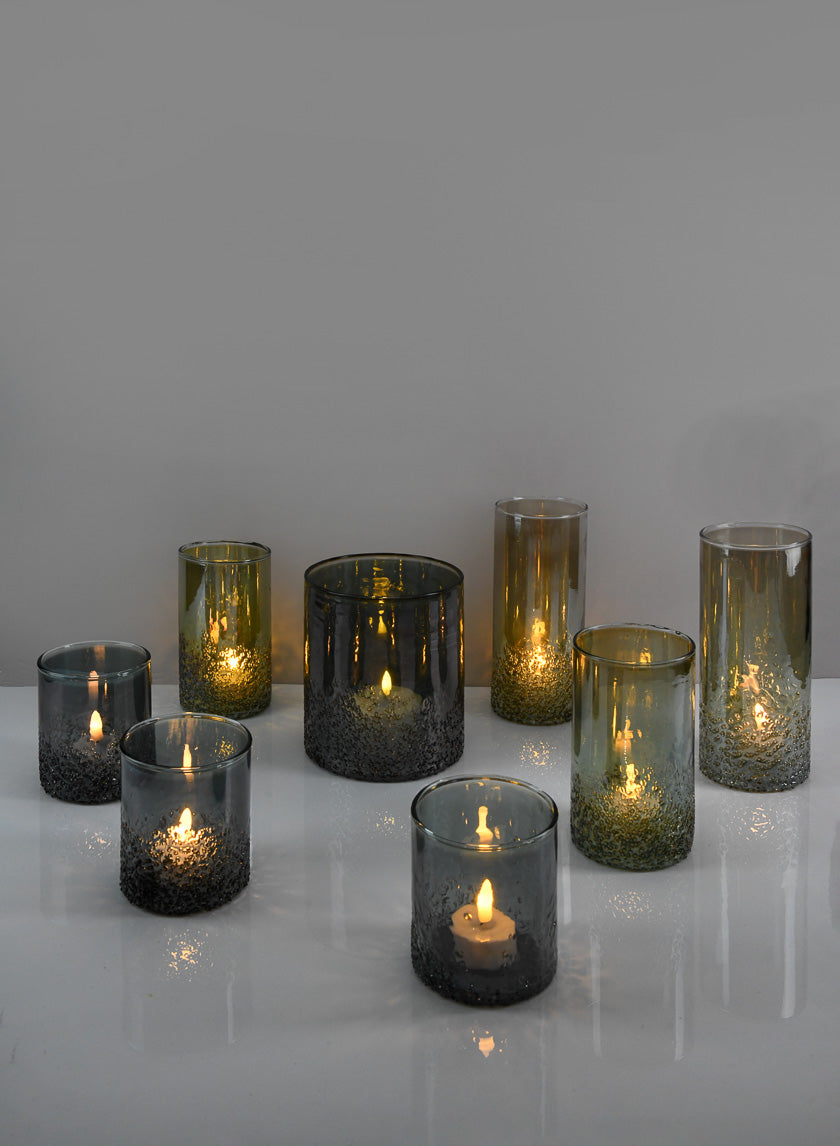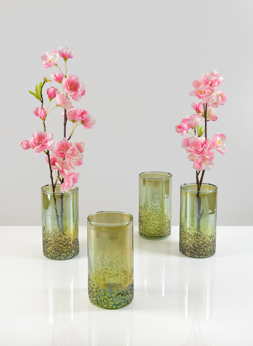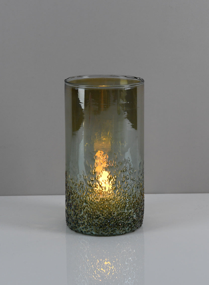 6in Tall Strasbourg Speckled Green Luster Glass Cylinder, Set of 4