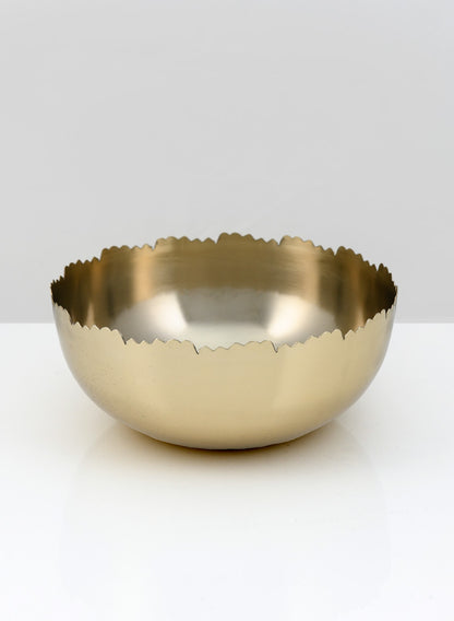 The Alamgir Gold Iron Bowl is a beautiful blend of modern elegance and artistic flair. This sculptural bowl is made of iron and completed in a deep, matte gold tone with a stunningly scalloped edge that gives your decor depth, personality, and a modern touch.