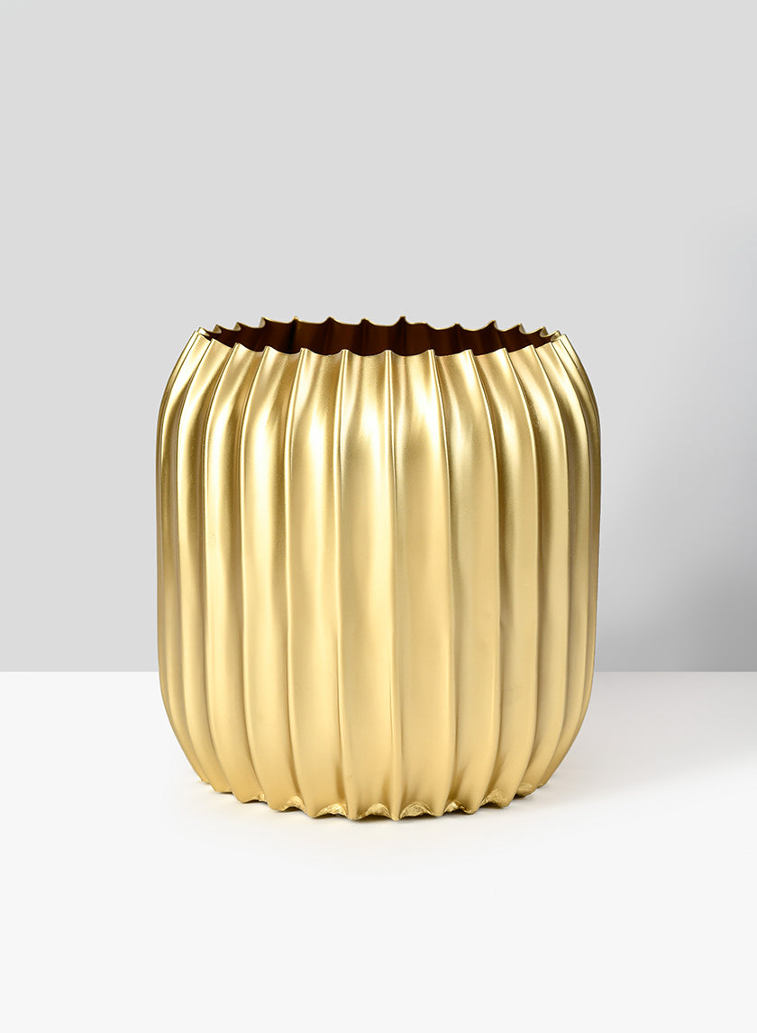 7in Tall Pleated Gold Metal Vase