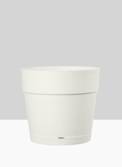 The Loft White Plastic Pot With Attached Saucer will help you to modernise your plant collection with simple elegance. While offering the practical advantage of an integrated saucer for water drainage, its simple, traditional white design accentuates the beauty of your plants.