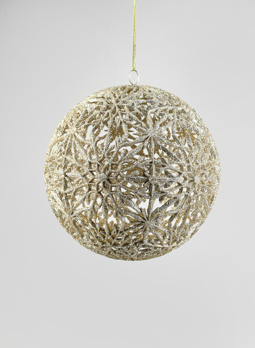 8in Round Snowflake Hollow Plastic Ball - Laser & Champagne Gold Glitter