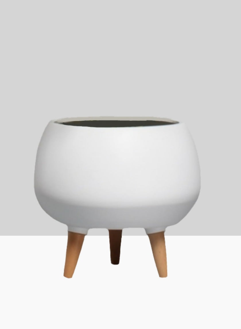 The Breakers Matte White Ceramic Planter with Wood Legs presents a modern and elegant approach to show your plants. This planter enhances any environment with its clean matte white surface and natural wood legs, therefore adding elegance and charm. Its sleek design makes it perfect for your living room, workplace, or any indoor area requiring a warm yet modern touch.