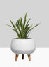 9.5in Tall Breakers Matte White Ceramic Planter With Wood Legs