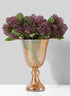 The amber glass pedestal vase centerpiece is a vessel that will pair well with a variety of flowers. We love how it looks with a bouquet of faux purple sedum. The amber shade also coordinates with colors such as pink and yellow for a springtime wedding or event. For a botanical look, choose green sprigs like the powder eucalyptus spray or fiddle leaf bundle.