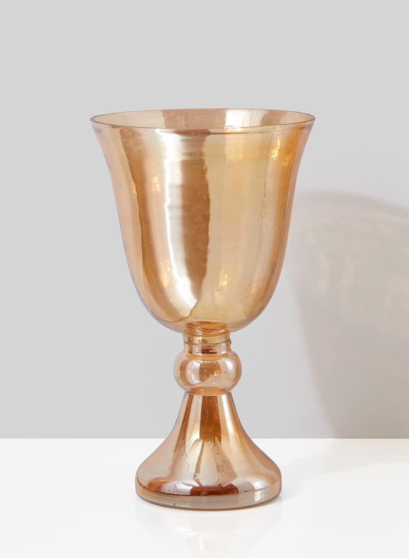 10in Tall Amber Luster Glass Pedestal Vase