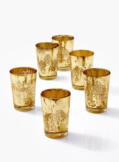3.5in Tall Antique Light Gold Tapered Glass Votive Holder, Set of 6