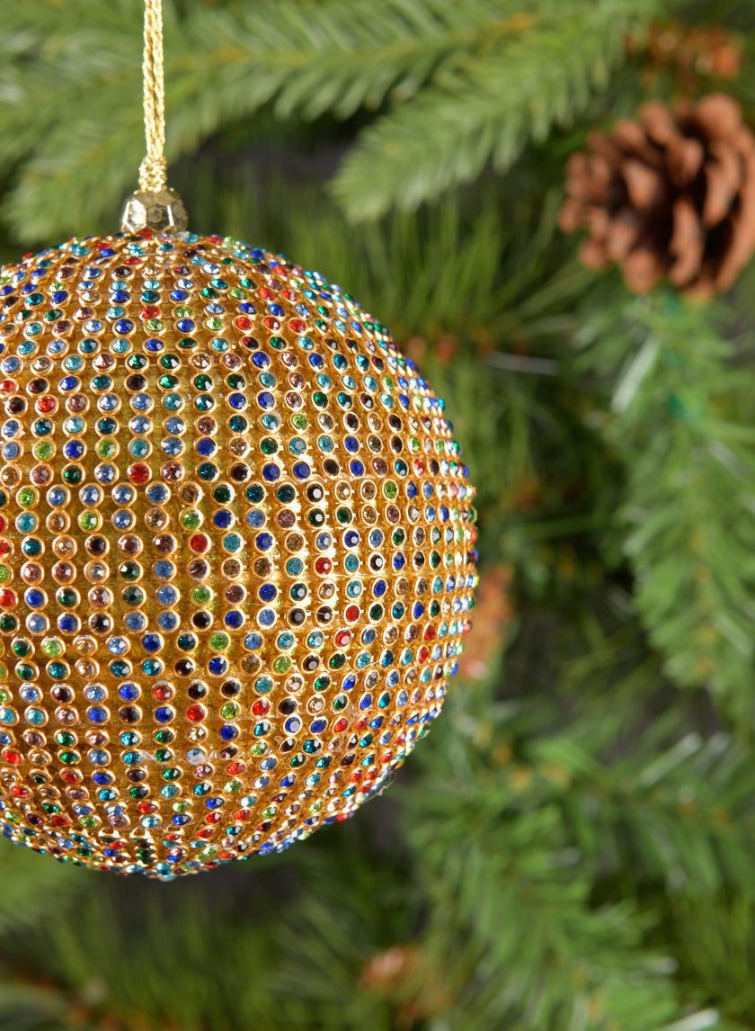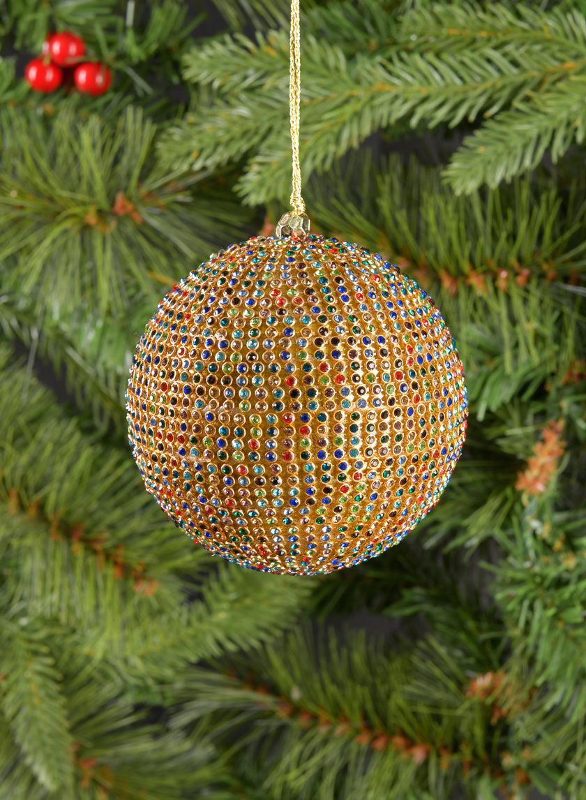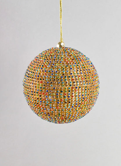 3.5in Round Antique Multicolor Crystal Bead Plastic Ornament