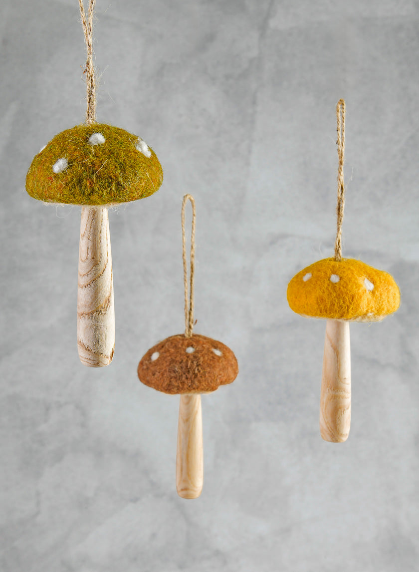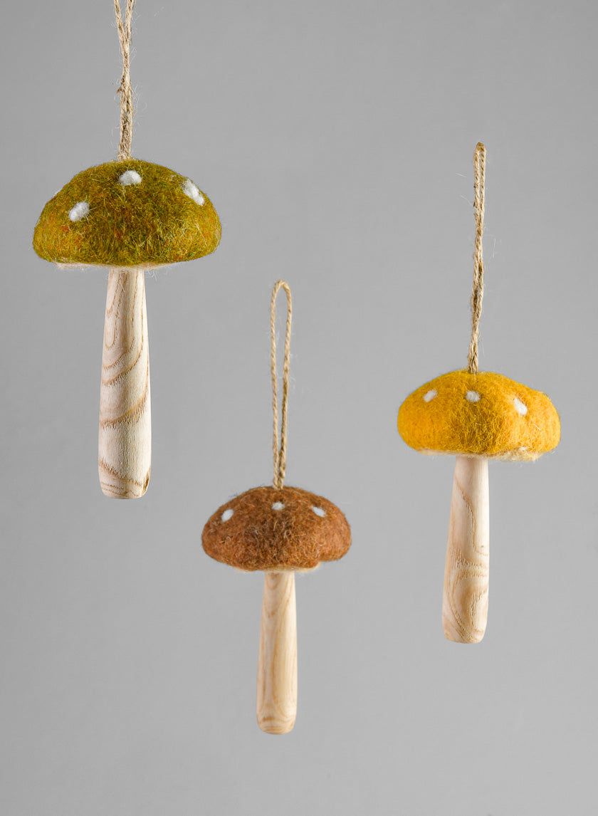 4in Long Assorted Hanging Mushroom Ornament, Set of 12