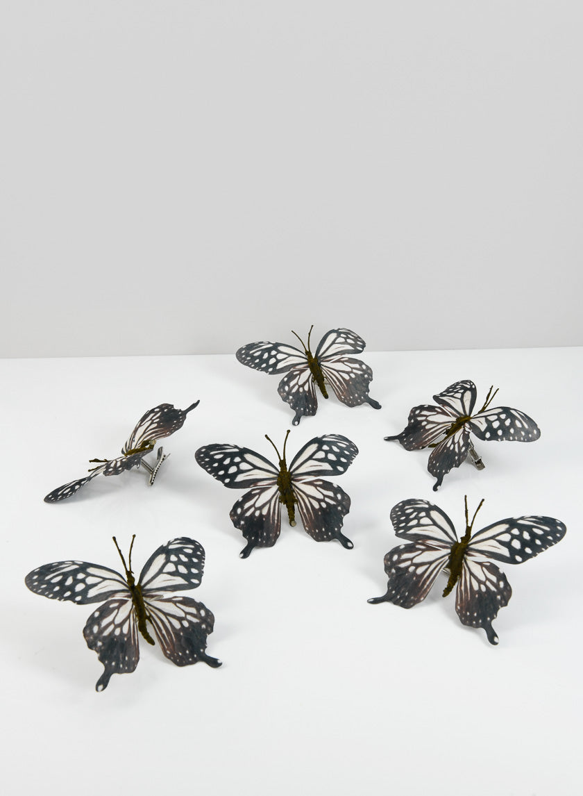 Invite new thinking to your decor ideas with our Black Butterfly Ornament clips. These impressive and striking butterfly clips can be easily added to your Christmas trees, garlands, vines, and other festive displays! These butterflies have intricate black and white designs that make them unique and take your decor to great new lengths. These Black Butterfly Ornaments are sold in a set of 6.