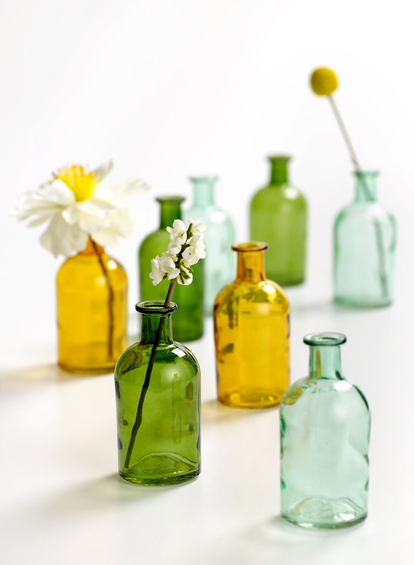 The Blue Medicine Bottle Bud Vases will help you to bring some nostalgic appeal into your décor. Inspired by vintage apothecary bottles, these vibrant glass vases are ideal for livening any area with a bit of character and color. Whether set together or separately, elegantly highlight little blossoms, giving the space a whimsical yet understated touch.