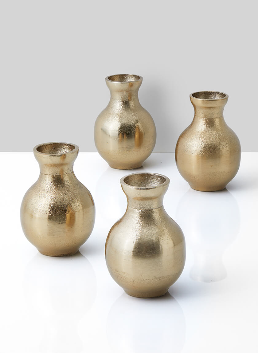 4.5in Tall Chateau Classic Gold Aluminum Bud Vase, Set of 4