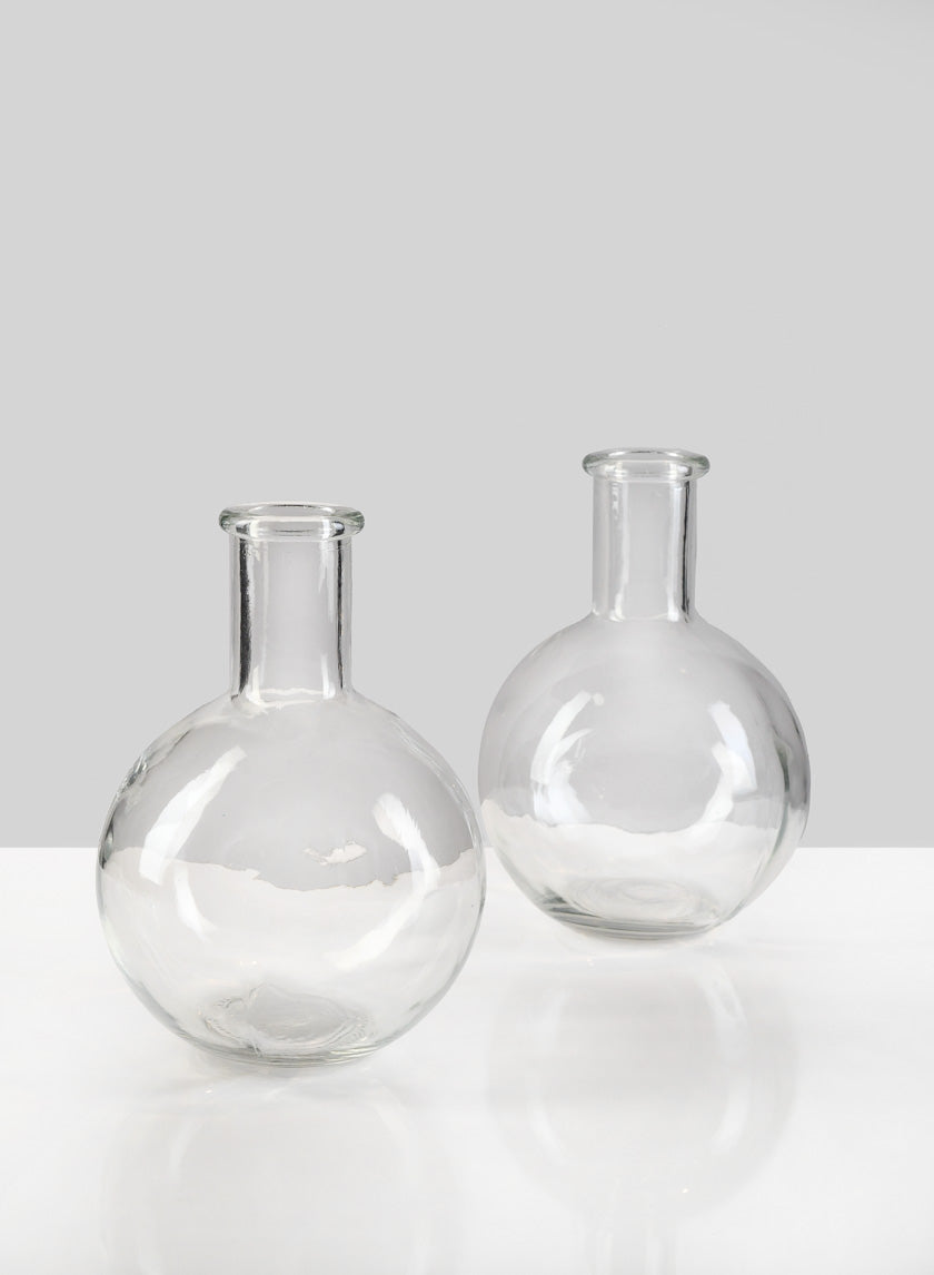 This clear glass, bottle-shaped vase is truly an easy piece to incorporate into your designs for home decor, weddings, and events.