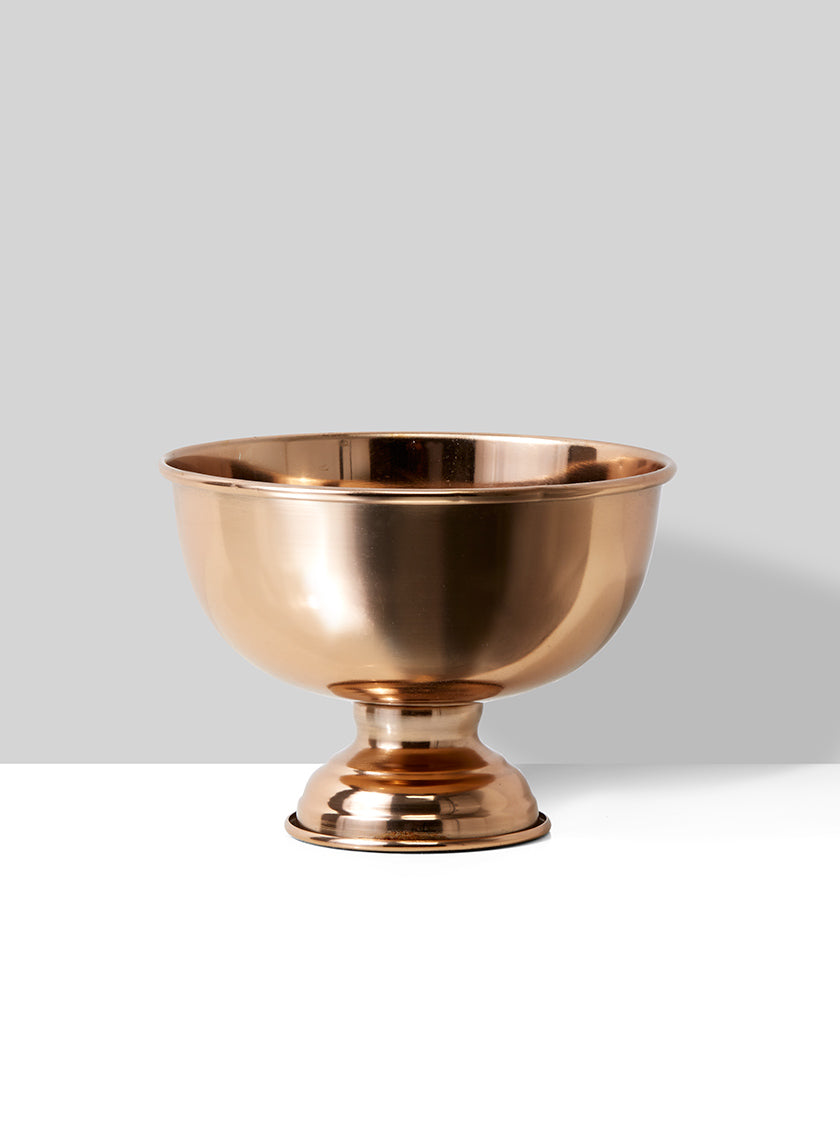 These elegantly shaped flower compote bowls are an excellent way to add a classic look and style to any space. The overall shape and opening let you house beautiful flower arrangements that work perfectly for various wedding and event styles. Consider placing a flower arrangement of peonies, dahlias and roses inside the copper compote to bring a touch of romance to your design.