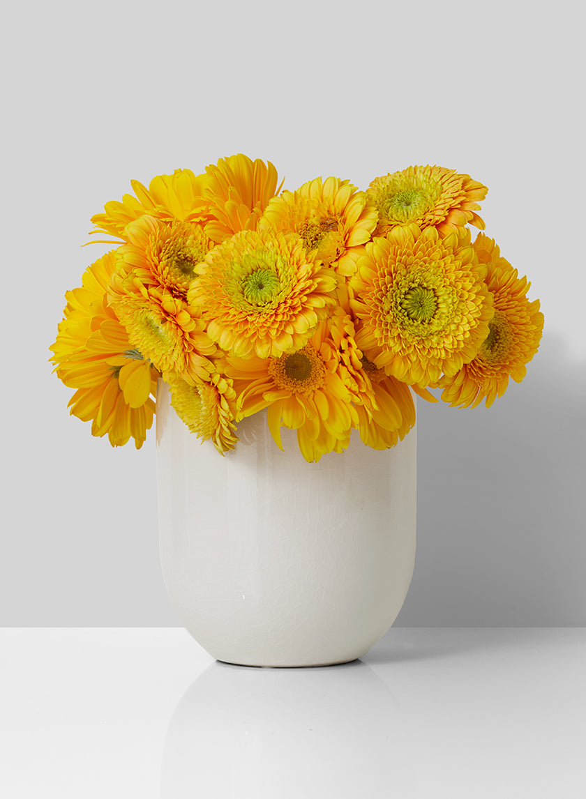 Display flowers and greenery in style with this crackled ceramic vase. Pair white ceramic vases with vibrant flowers such as an orange protea for eye-catching centerpieces, or create more subtle looks with a light pink tea flower bouquet.