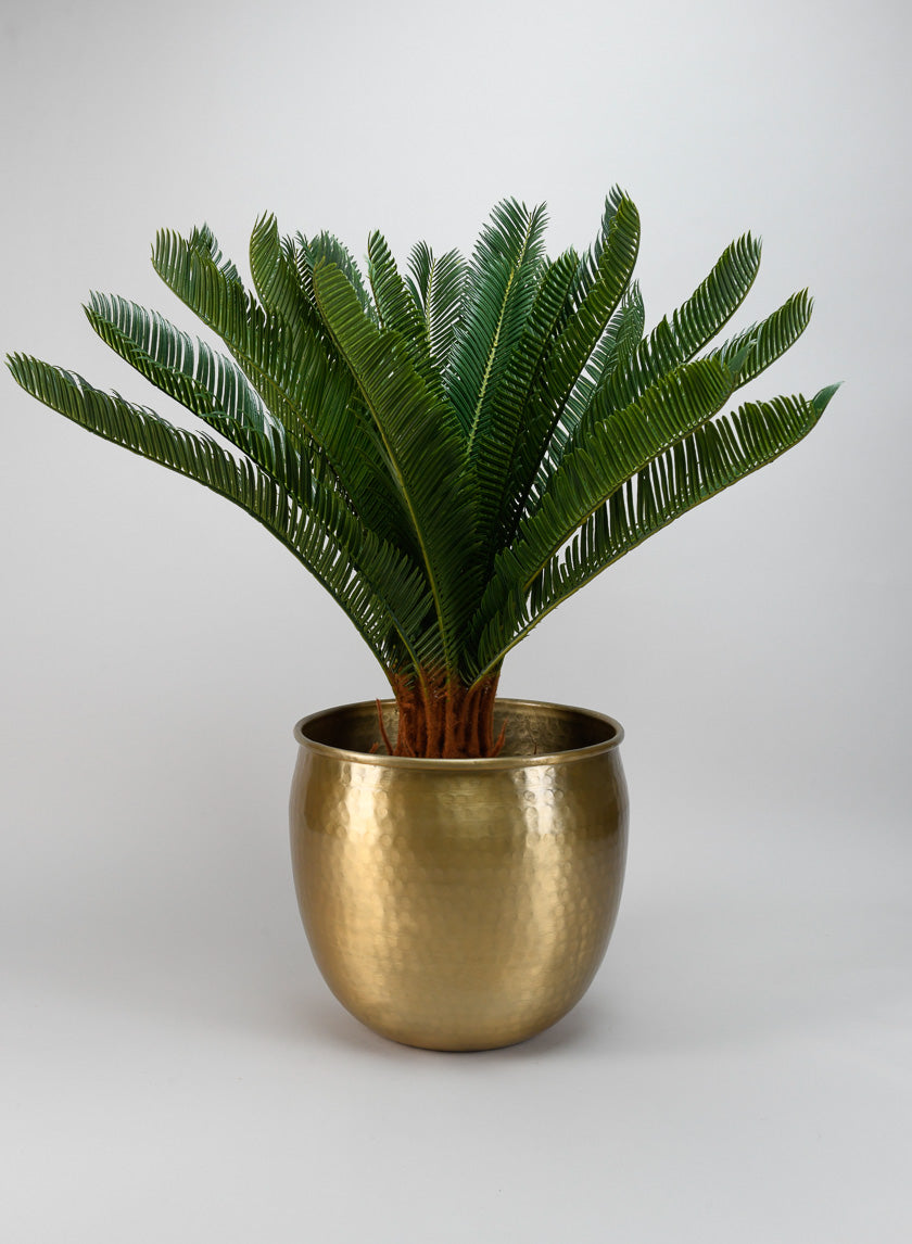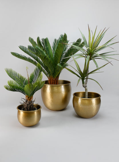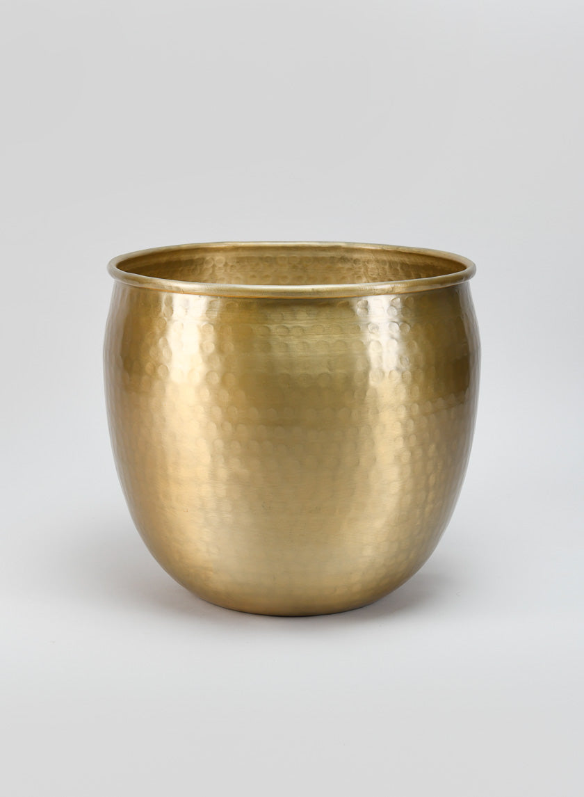 The Devdas brass-look indoor pot will elevate interior spaces, adding a touch of luxury wherever you place it. With its distinct hammered texture and rounded shape, this garden pot can fit into any room for an understated, classic feel. Whether displayed on its own or placed among similar garden pots, it provides a sophisticated feel that adds warmth and class to indoor gardens and tables, foyers, and welcome areas.
