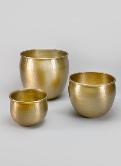 6.75in Wide Devdas Brass Look Aluminum Indoor Garden Pot, Small