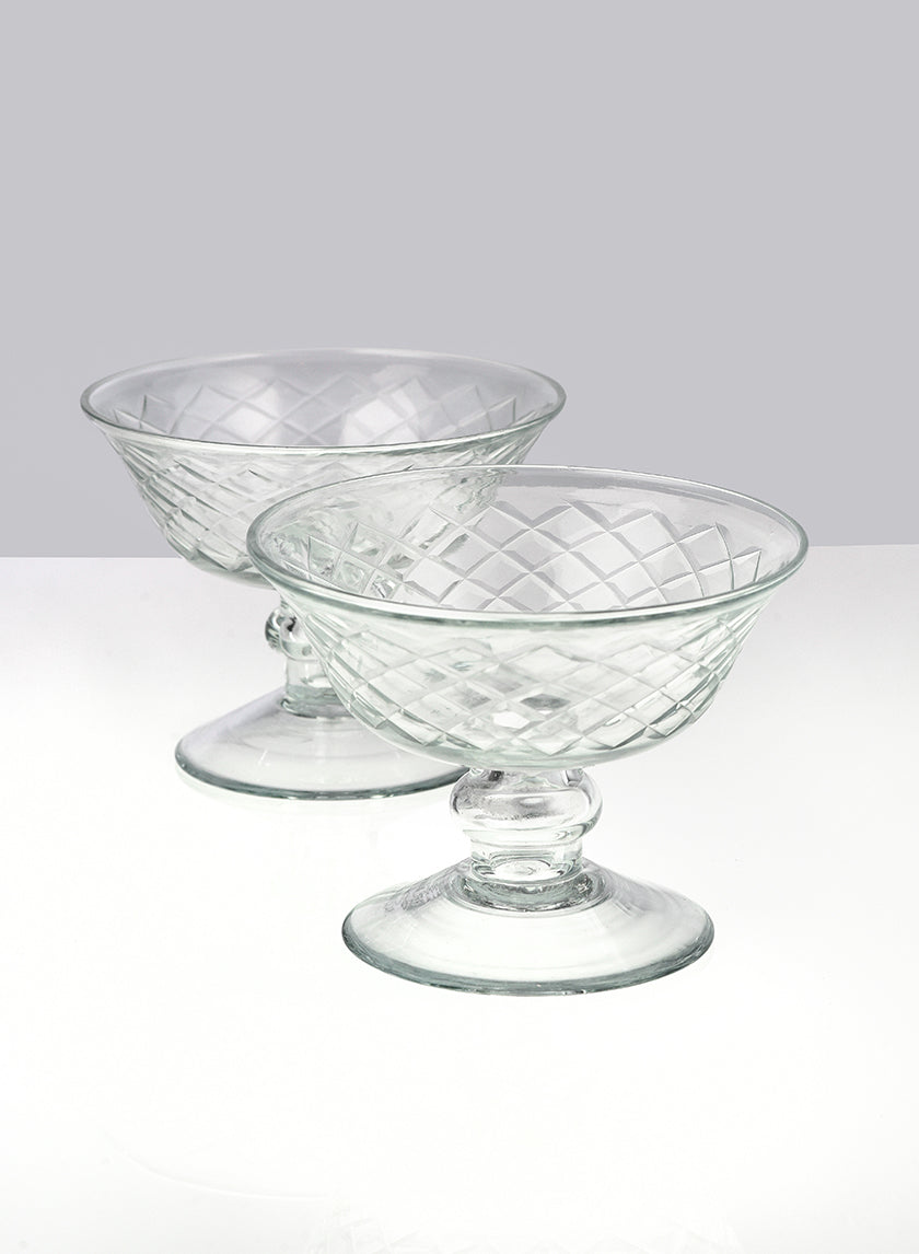 Order your glass pedestal bowls from Jamali Garden today. Be sure to complete the collection and order the matching 6x5 diamond cut pedestal bowl as well.