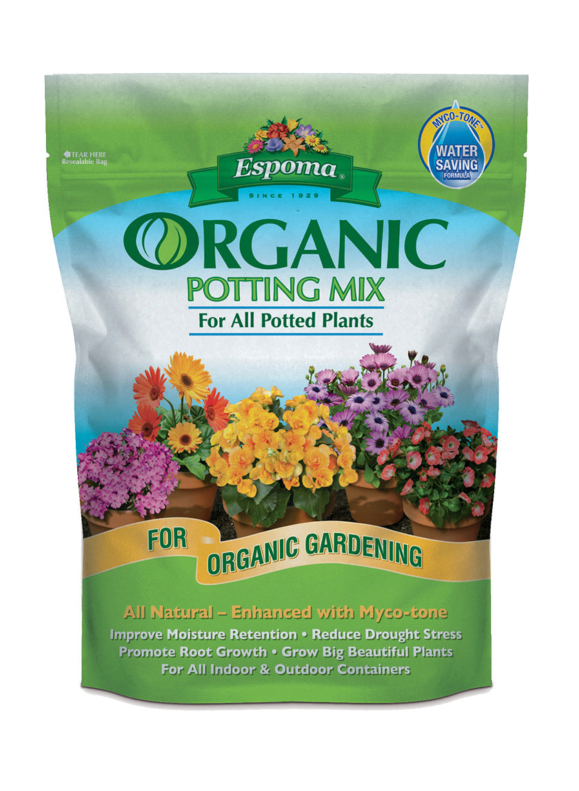 Espoma Organic Potting Mix boosts plant growth with Myco-tone, enhancing root growth and water uptake. Ideal for indoor and outdoor plants.