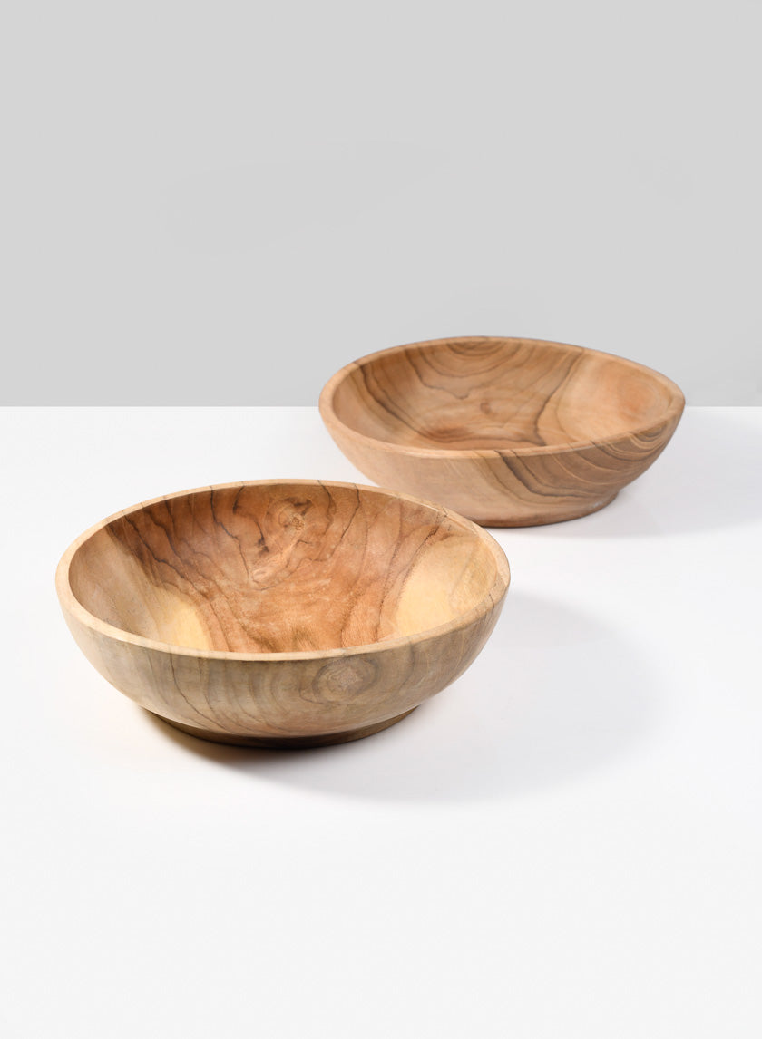 7.25in Wide Pedestal Teak Wood Bowl, Set of 2