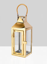 Gold Soho lanterns are also ideal for photo booth props at party venues. The smaller gold lanterns can be hung or placed on a crate draped with copper and gold, creating a unique decorative photo element. Place beautiful roses around the standing lanterns. Or, gently wrap the hanging lanterns with delicate ribbons or warm white LED cluster lights for subtle yet luminous decor.
