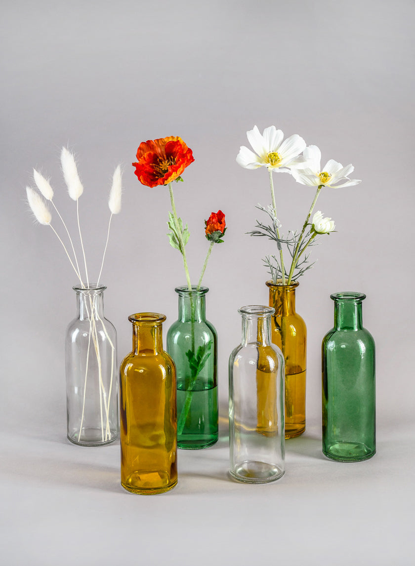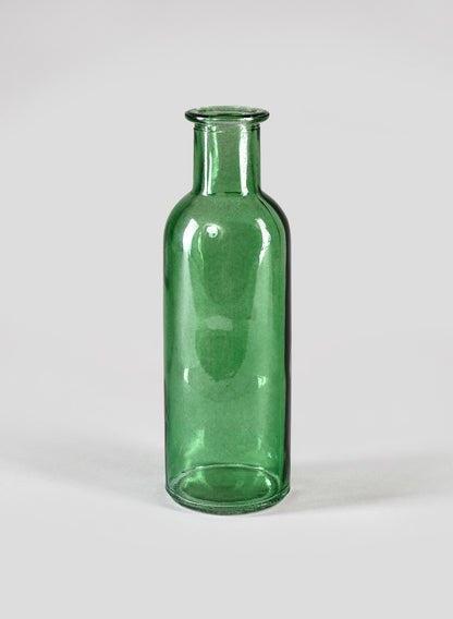 Add a dash of retro style to every space with these lovely green glass bottle vases. Their traditional bottle form and vivid green color make them ideal for displaying little bouquets or bringing a splash of color.