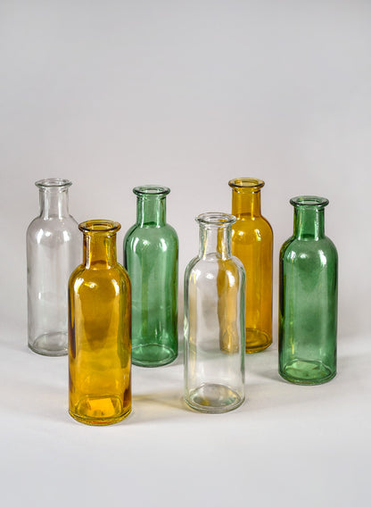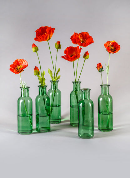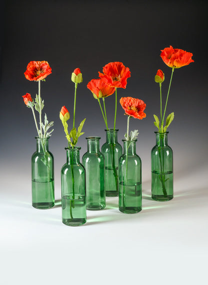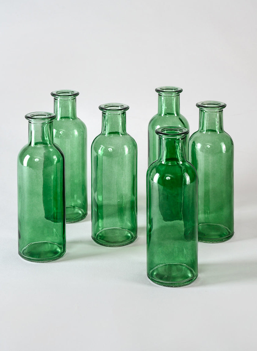 6.5in Tall Green Glass Bottle Bud Vases, Set of 6