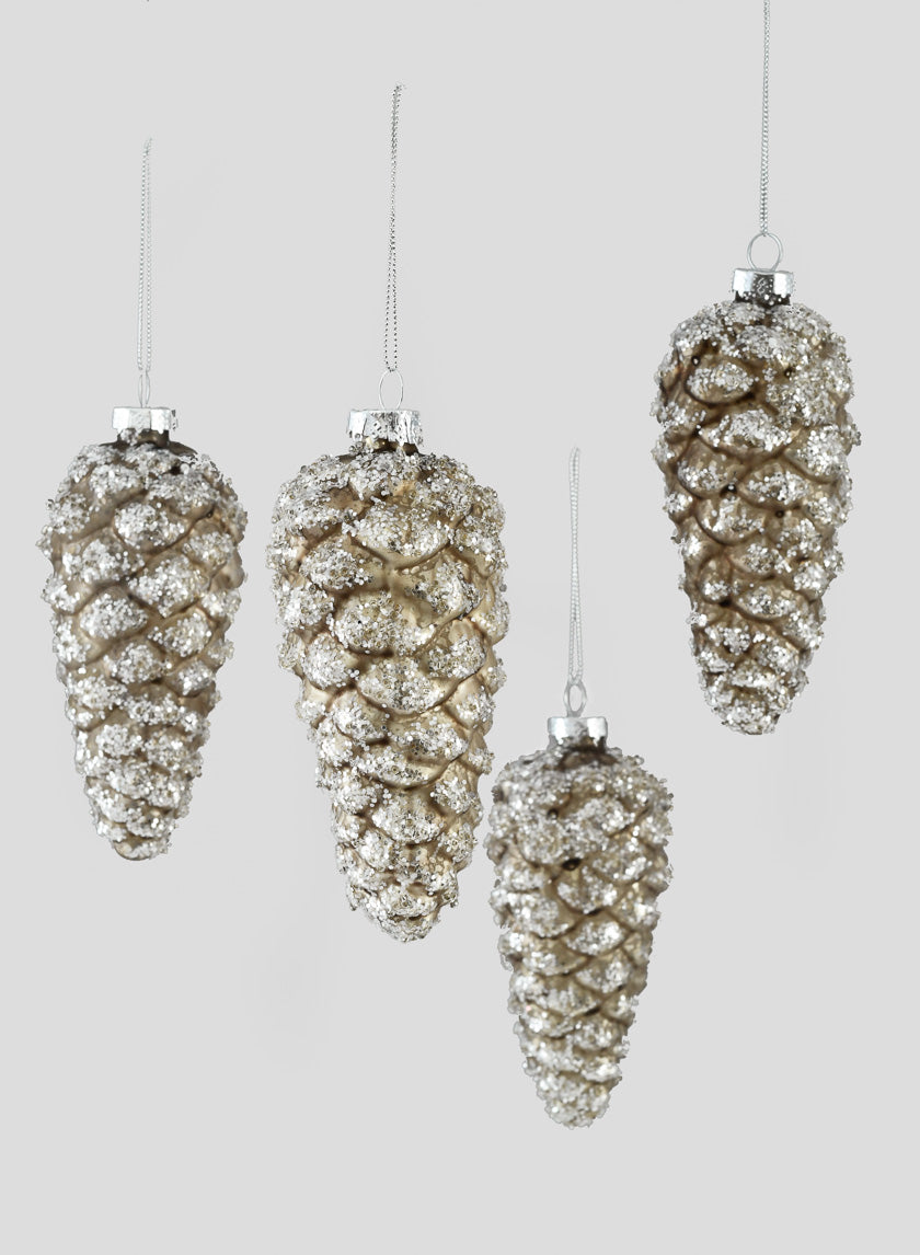 5.5in Long Iced Glass Pine Cone Ornament, Set of 4