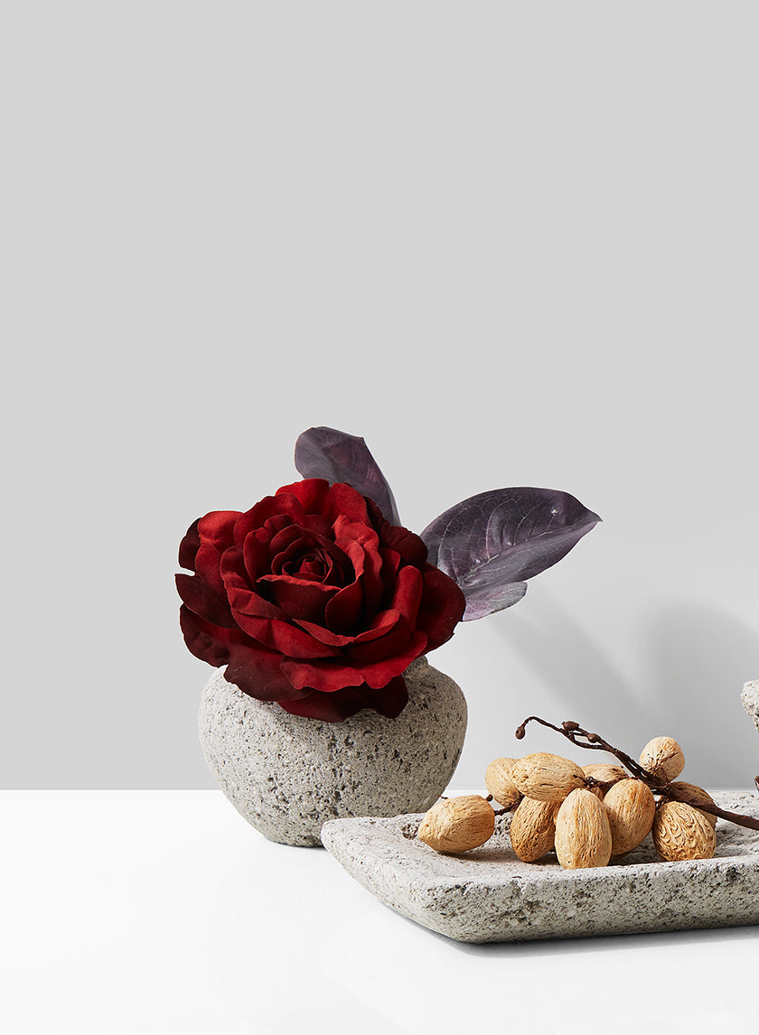 With its beautifully textured and porous appearance, this natural pumice fishbowl is perfect for small arrangements for small tables, for bar, or cocktail hour tables. Our mini fishbowl holds a silk flower arrangement with a faux rose and purple magnolia leaves. Use a liner if using liquids. This pumice is a by-product of Mt. Pinatubo's volcanic rocks. Pumice, a highly vesicular pyroclastic igneous rock, also known as pumice, is formed as pyroclastic material is ejected into the air as a froth containing masses of gas bubbles or vesicles. The lava solidifies and the vesicles are contained in the rock.