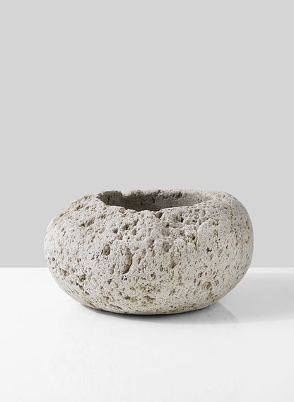 Use with a liner if using with liquids. This pumice is a by-product of Mt. Pinatubo's volcanic rocks. Pumice, a highly vesicular pyroclastic igneous rock, also known as pumicile, is formed as pyroclastic material is ejected into the air as a froth containing masses of gas bubbles or vesicles. The lava solidifies and the vesicles are contained in the rock. This pot does not have a drainage hole and drilling holes on the pot is not recommended as it may crack.