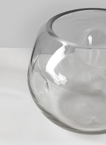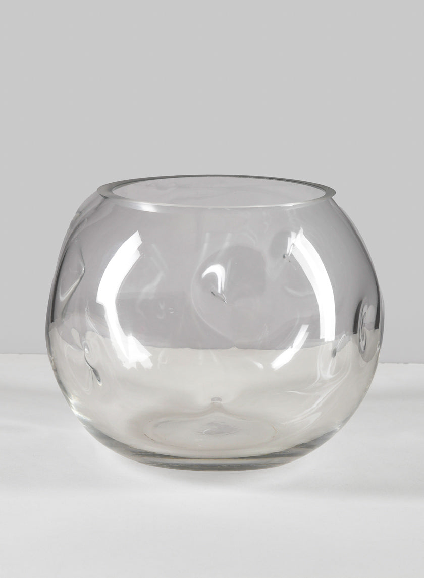 7.5in Wide Luster Dimpled Clear Fishbowl Glass Vase